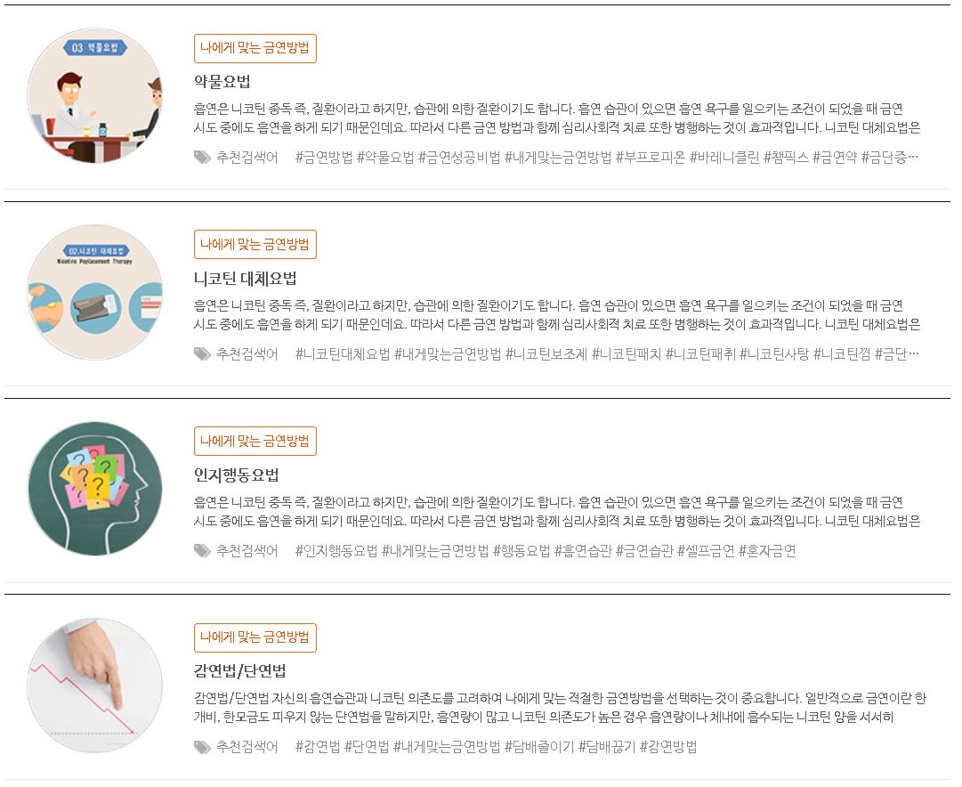 설명내용을 자세히 읽어보고 나에게 맞는 담배 끊는 방법은 어떤 것이 있는지 가늠할 수 있다.