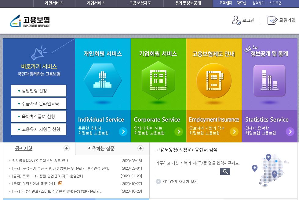 고용보험 홈페이지에서 온라인으로 신청 가능하고 거주지의 고용복지플러스센터에 방문 혹은 우편 신청 가능하다.
