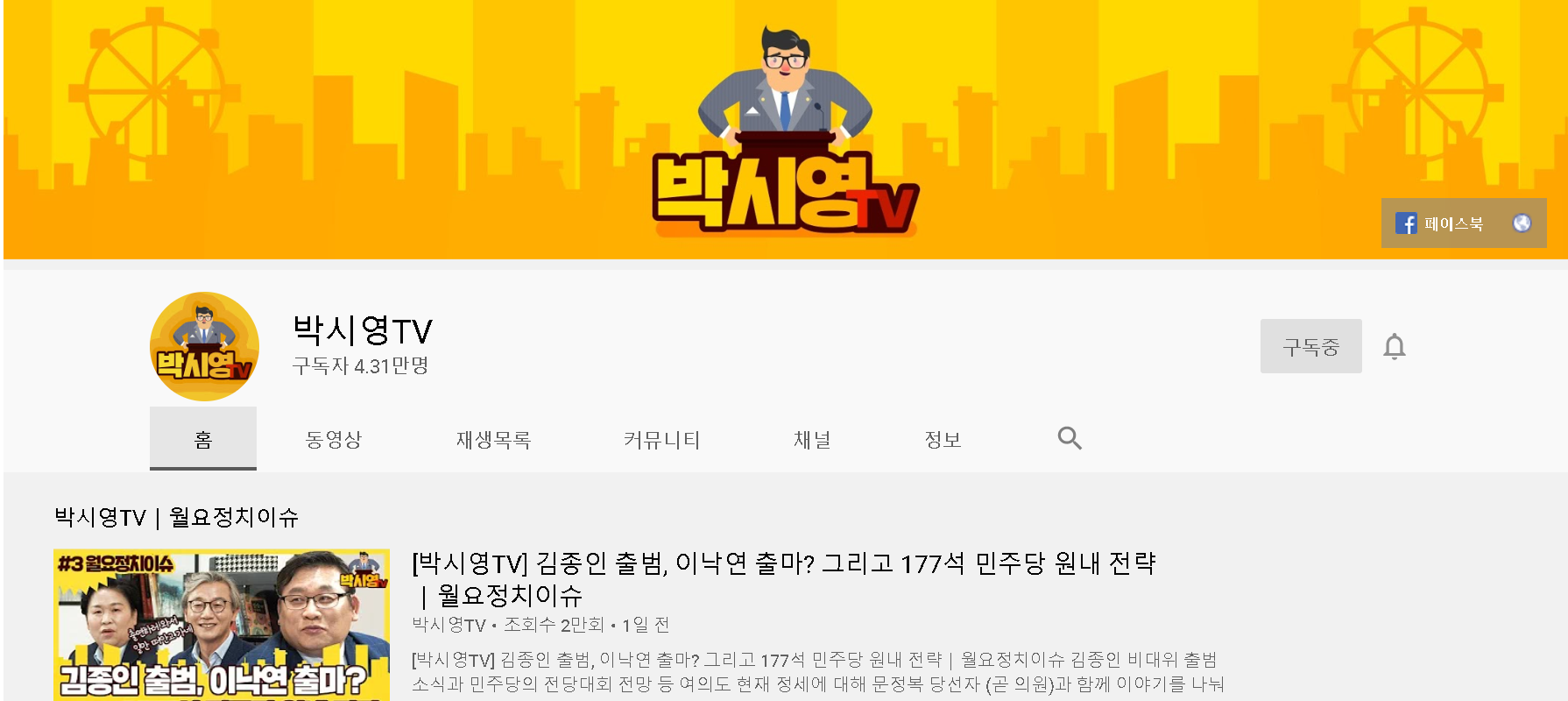 박시영의 눈을 진행하던 여론 분석 전문가 박시영 대표가 유튜브 채널 박시영 TV를 오픈했다.