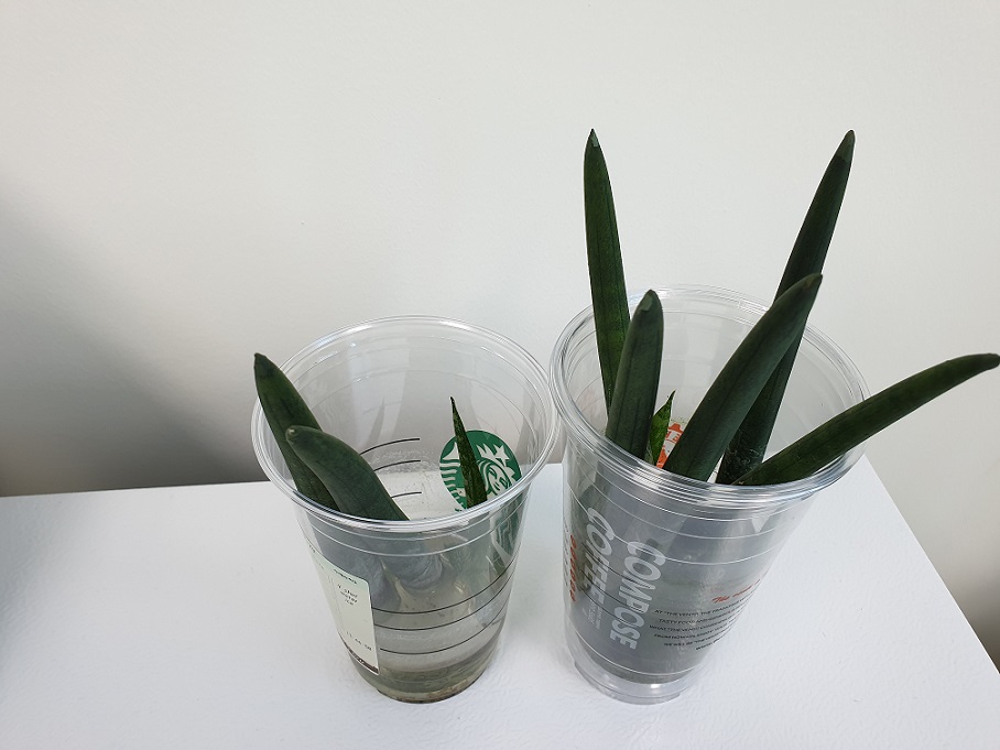 일회용 아이스커피 플라스틱 컵 재활용을 해서 1년 넘게 잘 키우고 있다.