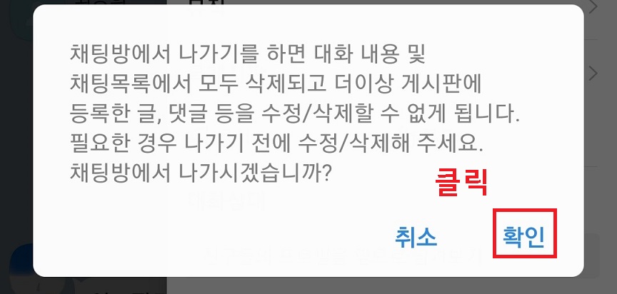 3. 그럼 단톡방 나가기 의사를 묻는 메시지가 나오는데 확인을 클릭한다.