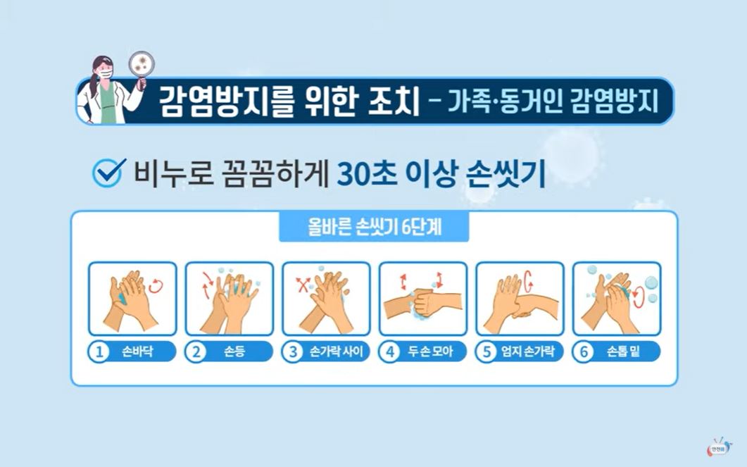 비누로 30초 이상 씻기와 같은 기본 위생 수칙을 잘 지켜야 한다.