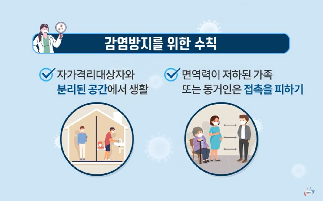 지금까지 자가격리 대상자 본인이 지켜야 할 행동수칙(자가격리 방법)을 알아보았다.
