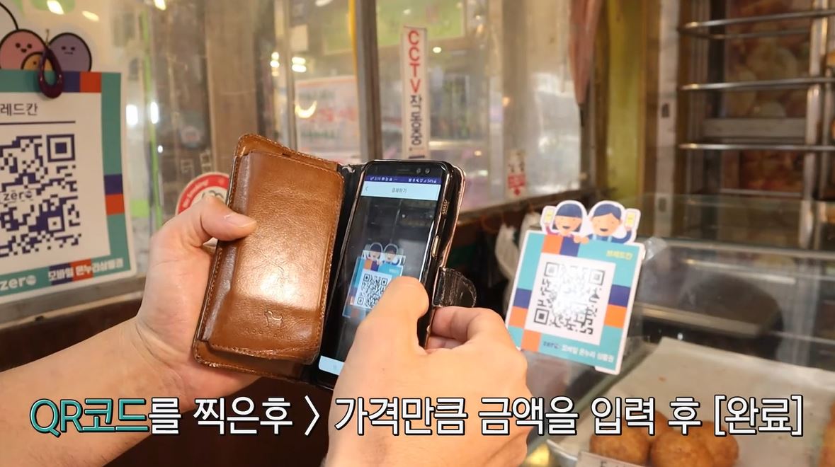 물건 구매 후 가맹점의 QR 코드를 촬영하고 금액을 입력하면 결제되는 시스템이다.