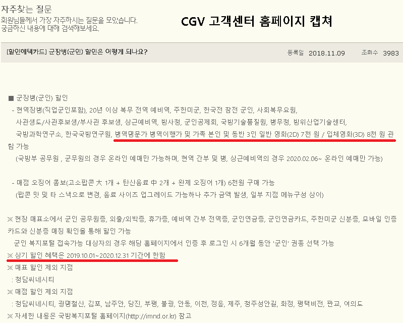 병역명문가 신청하고 CGV 롯데시네마 영화 관람료 할인 등 혜택받기