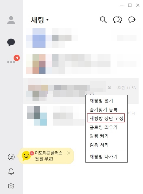 PC에서도 카톡 채팅방 상단고정 해제를 하고 싶다면?