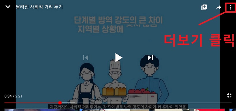 1. 화면을 터치하면 상단에 더보기가 보이는데 클릭한다.
