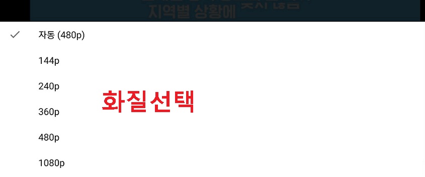 3. 화질을 선택할 수 있는 화면이 뜨는데 이중 가장 고화질을 선택하여 유튜브 화질 설정을 하면 된다.