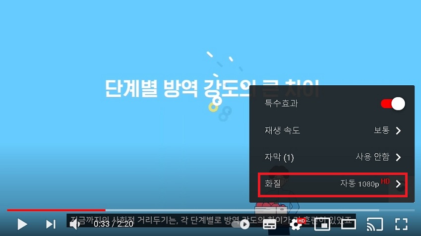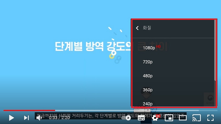 그러면 고화질을 선택하여 유튜브 화면 설정을 하면 된다.