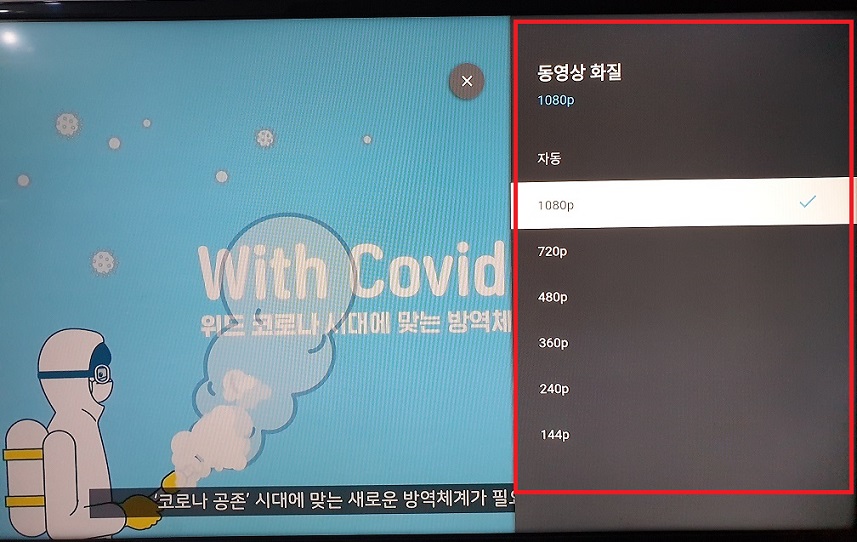 간단한 설정만으로 고화질의 화면으로 유튜브 동영상 시청을 할 수 있다.
