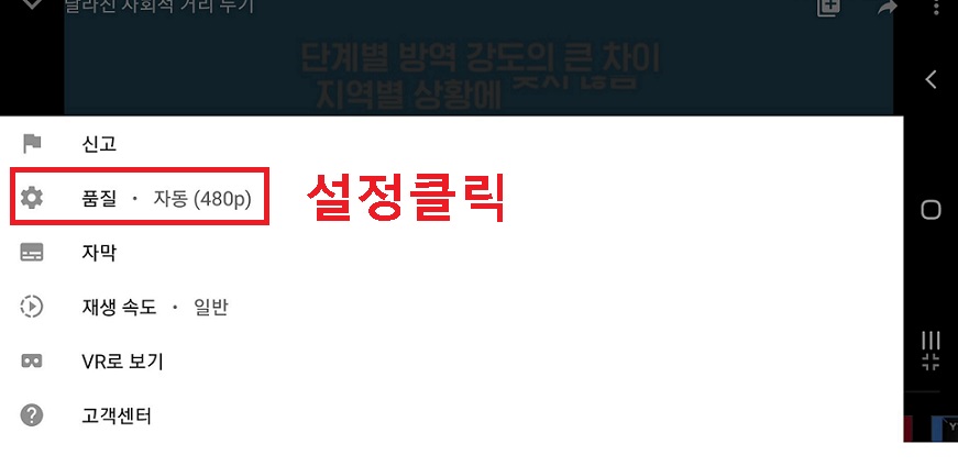 아래 사진 톱니바퀴 모양에 품질 자동(480p)라고 되어있다.