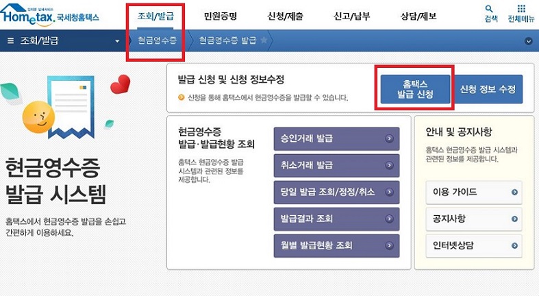 국세청 홈택스 현금영수증 가맹점 신청, 발급방법