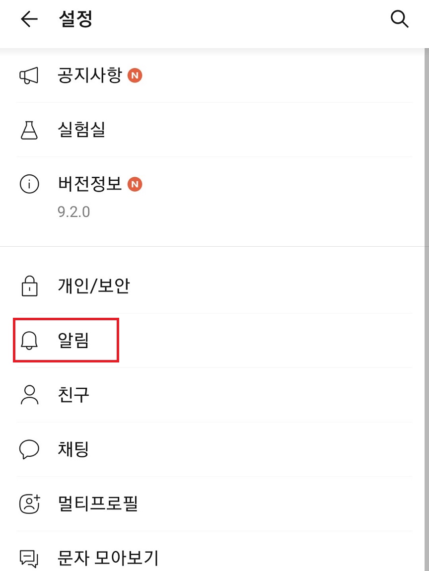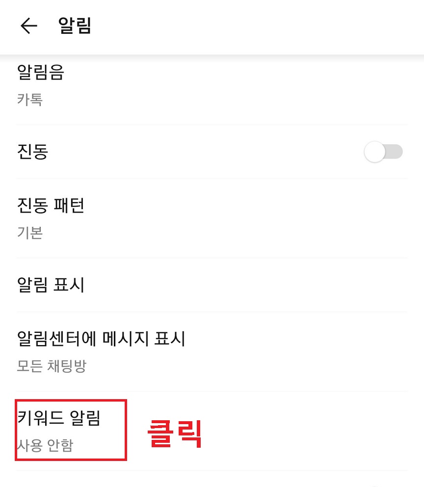 3. 알림 페이지에서 카톡 키워드 알림을 클릭한다.