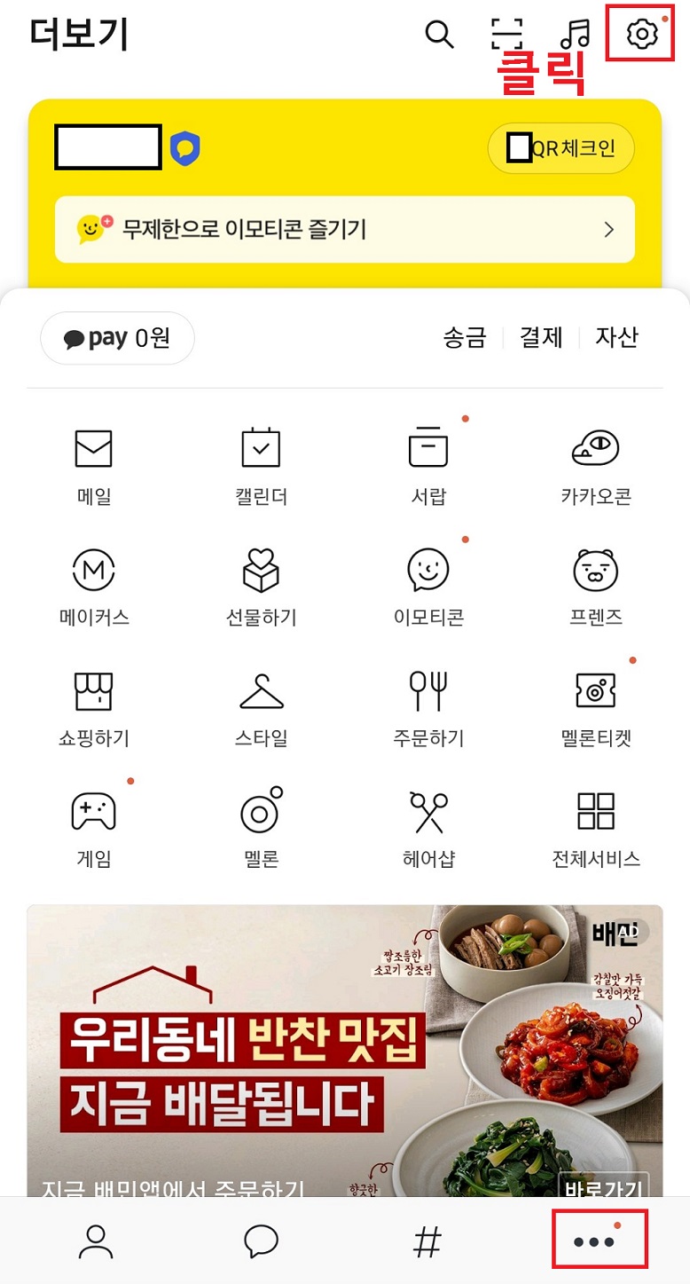 1. 카톡 더보기 페이지에서 상단 설정을 클릭한다.