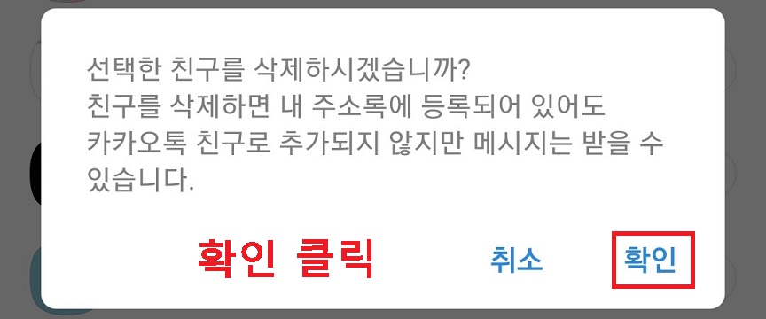 그럼 카톡 친구 삭제 방법이 거의 완료된다.