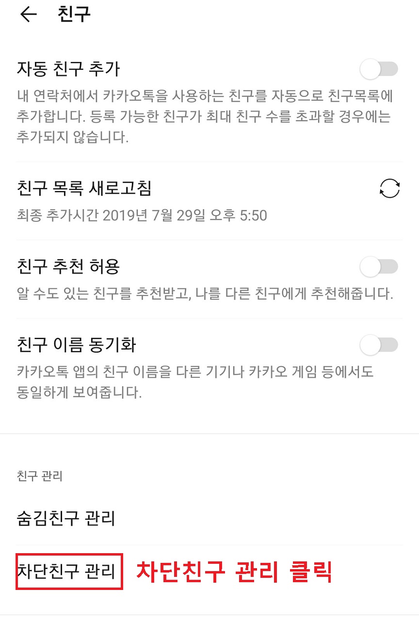 2. 카톡 친구 차단 → 카톡 친구 삭제
