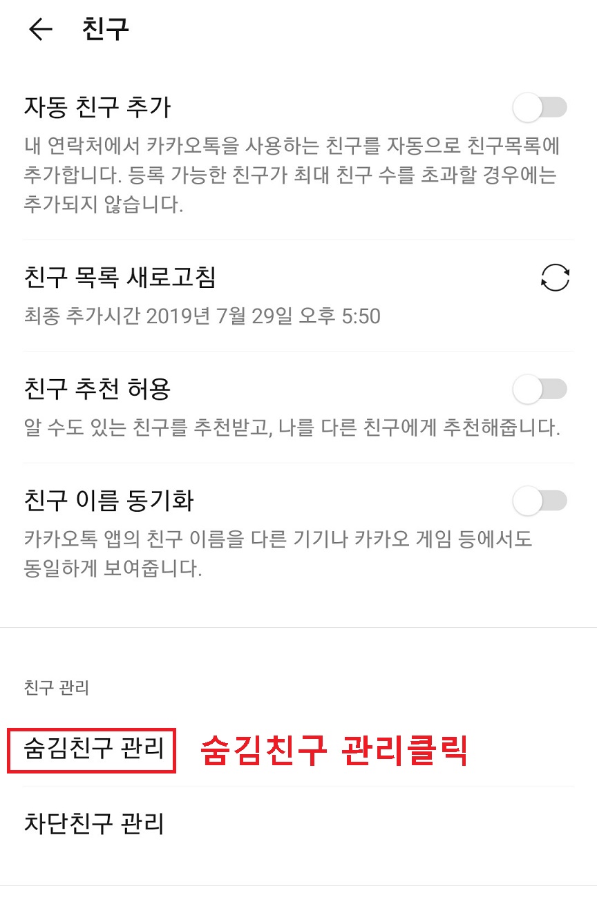 숨김으로 카톡 친구 삭제 방법