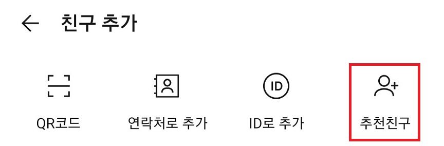 1. 친구 추가에서 추천 친구를 클릭한다.