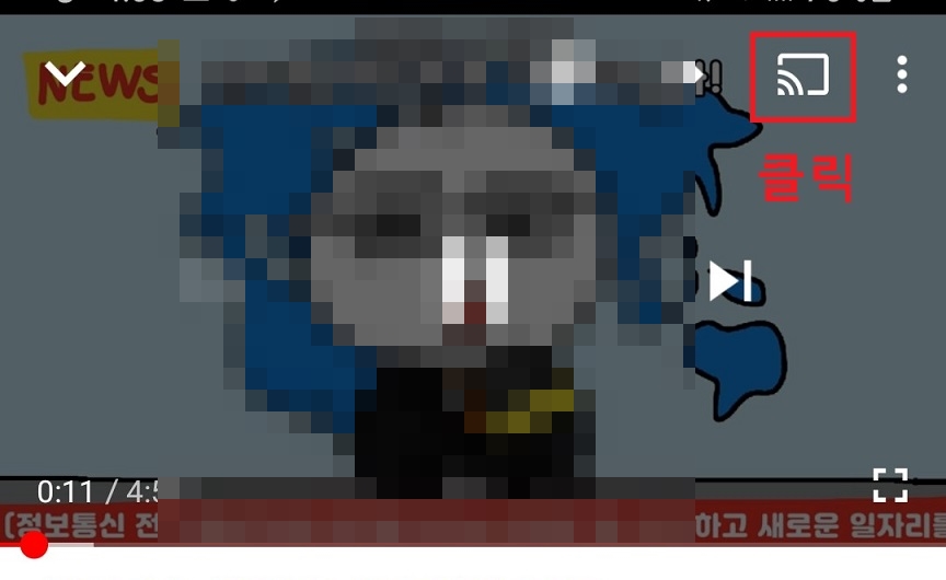 2. 핸드폰 유튜브 동영상을 재생한 후 화면에 표시 부분을 클릭한다.