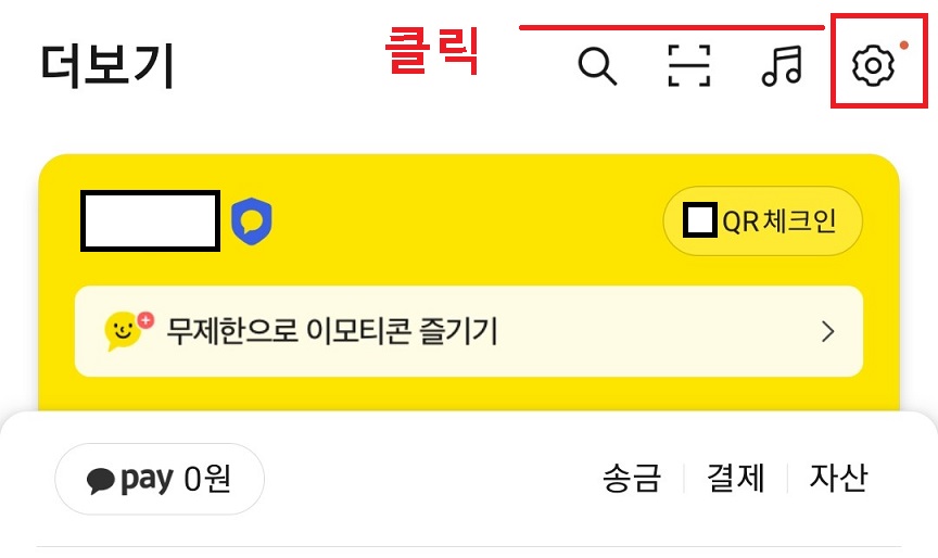 1. 더보기 상단에 톱니바퀴 모양의 설정을 클릭한다.