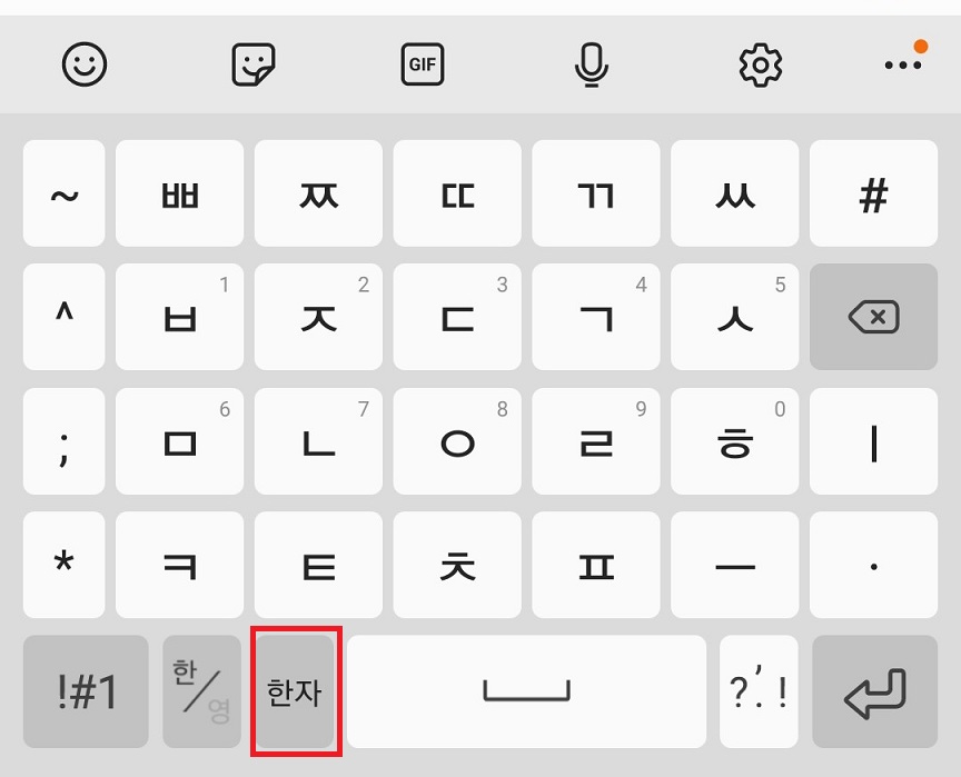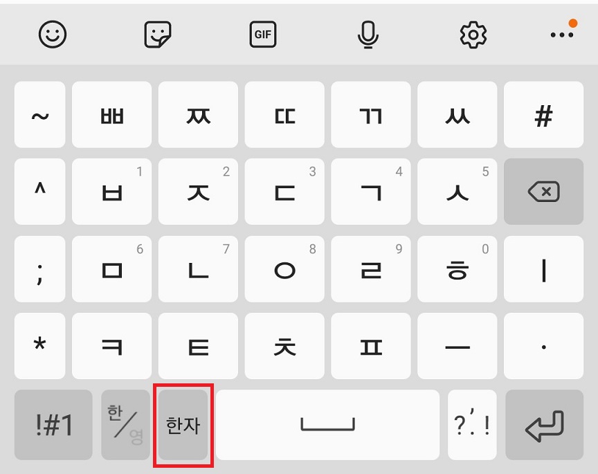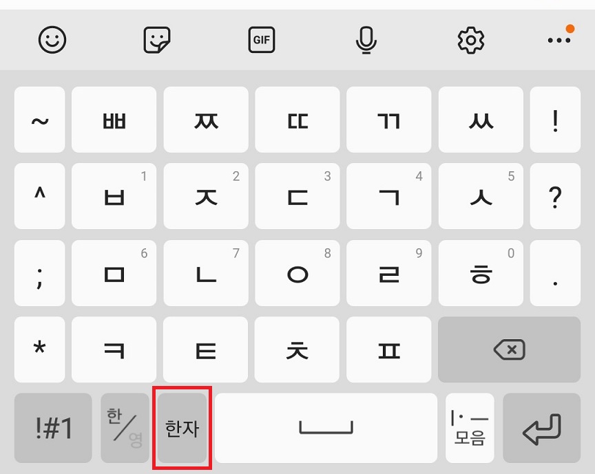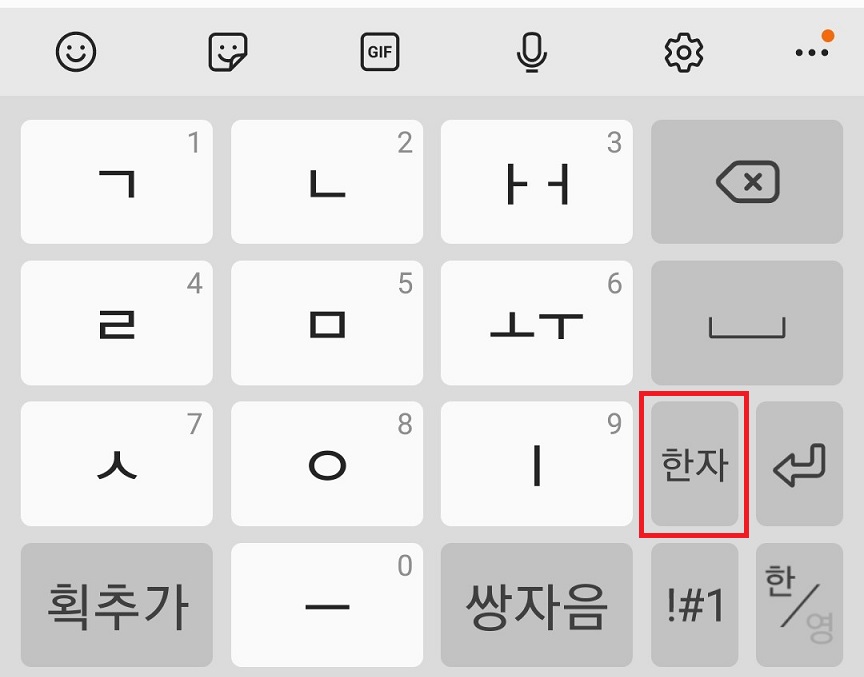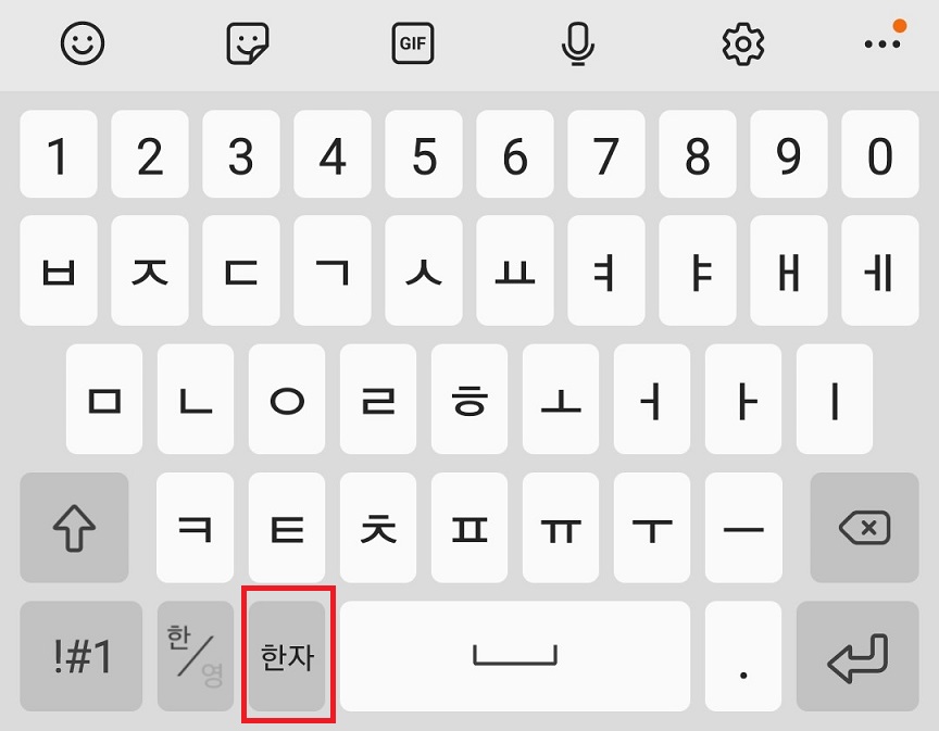 아래쪽 한자 버튼으로 카톡 문자 메시지 한자 입력 변환하면 된다.