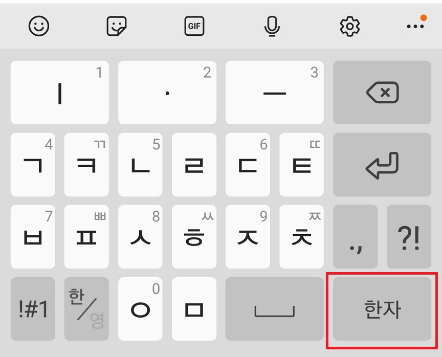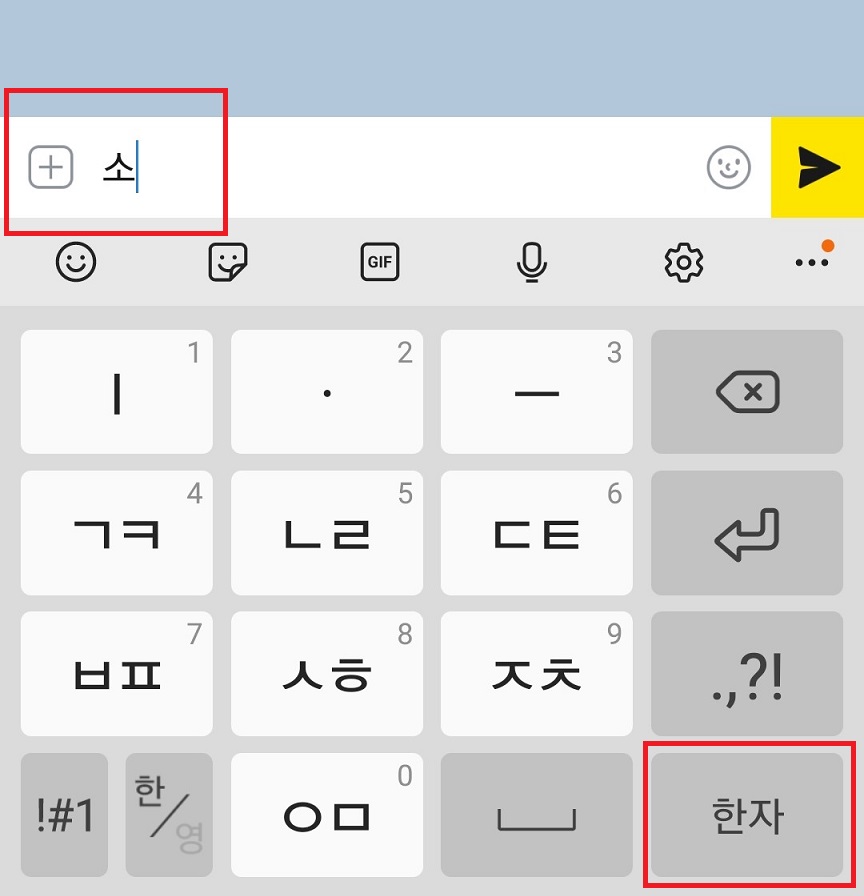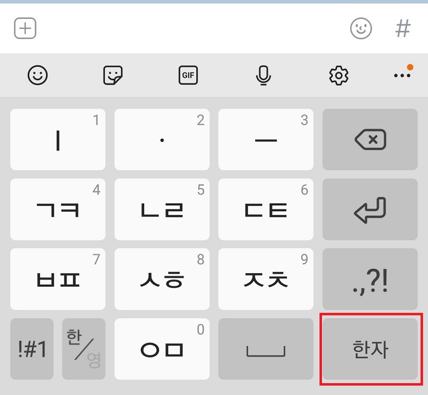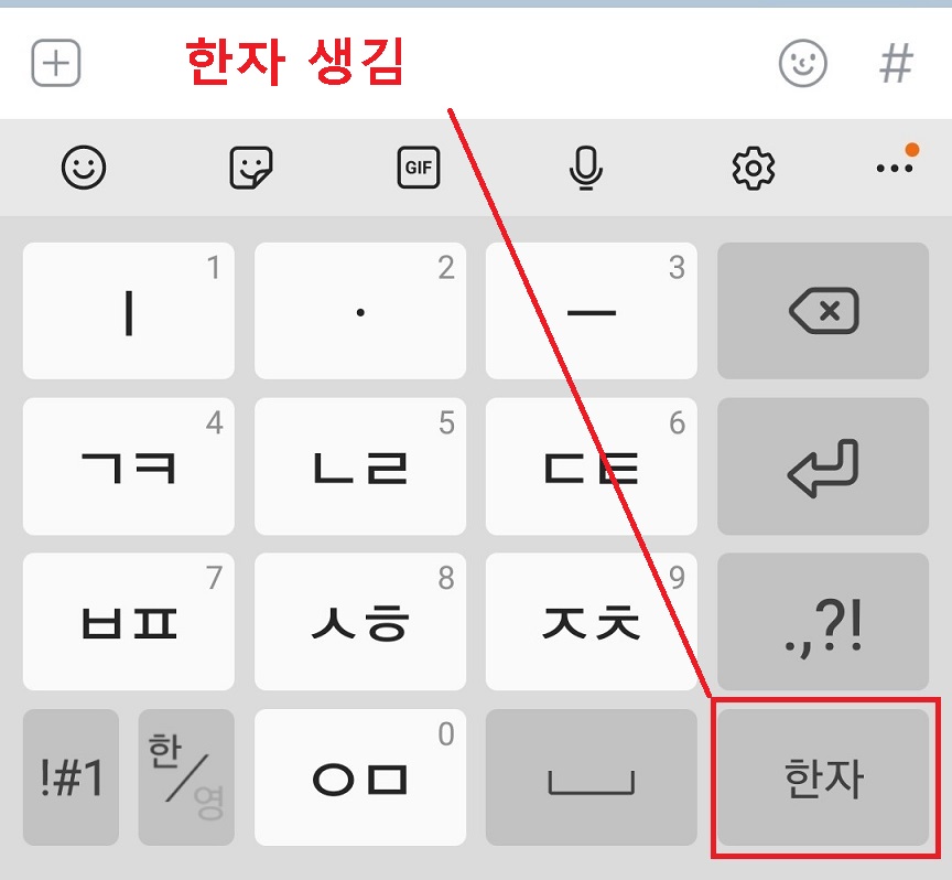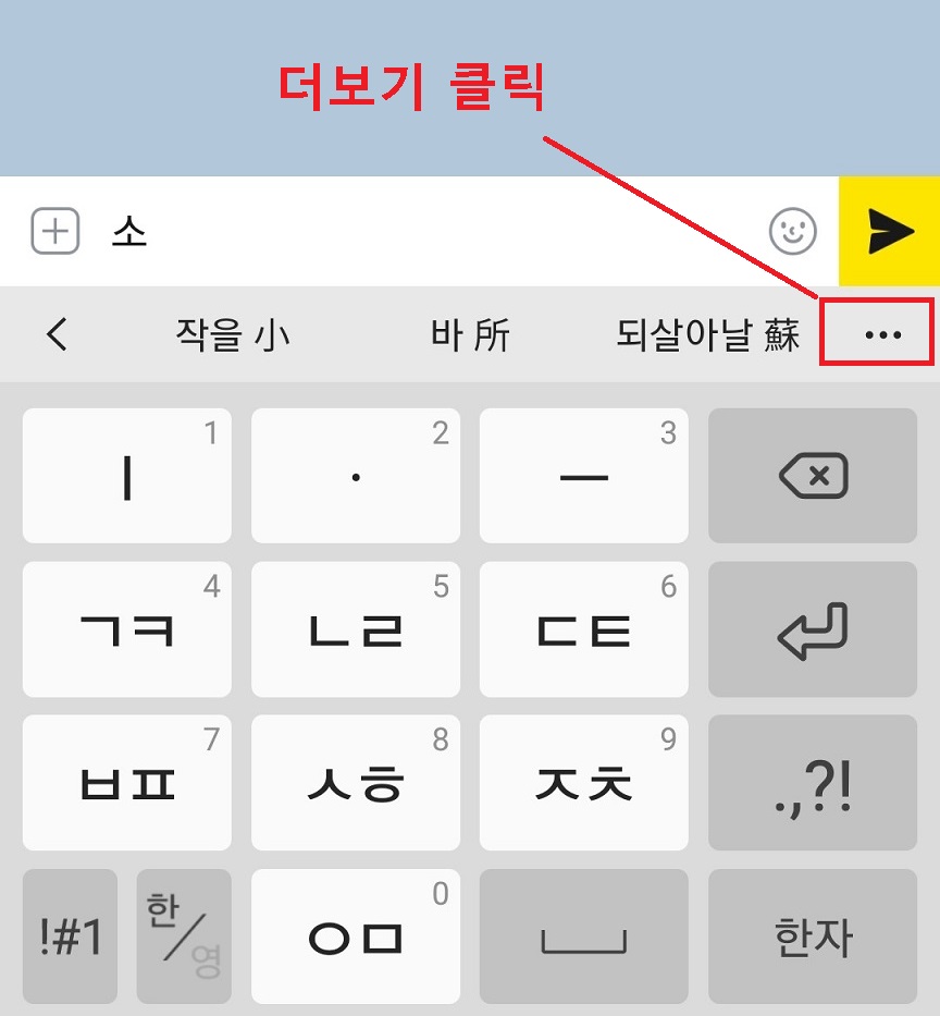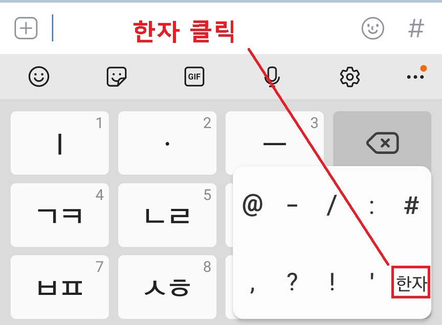 하단 표시 부분 한자 버튼으로 카톡 한자 입력 변환한다.