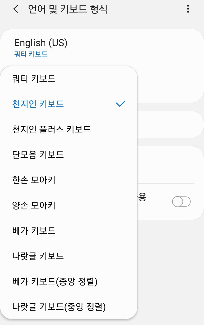 4. 그럼 선택할 수 있는 키보드 목록이 뜨는데 설정하면 된다.