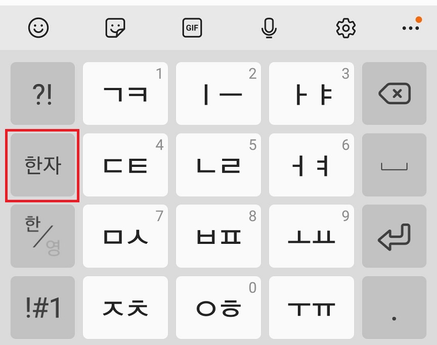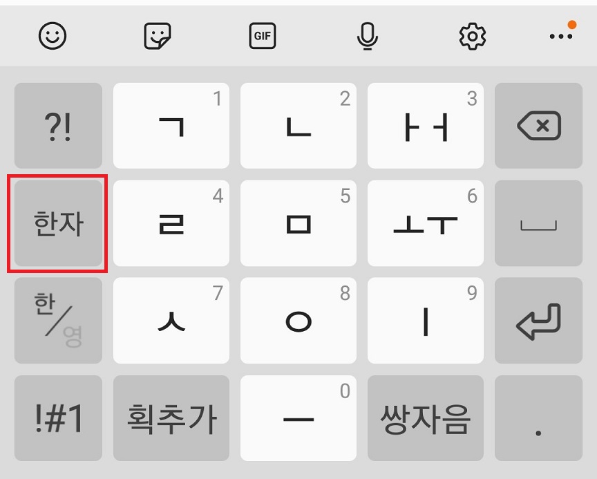 좌측 두 번째 줄의 한자 버튼을 확인 후 카톡 한자 입력 변환하자.