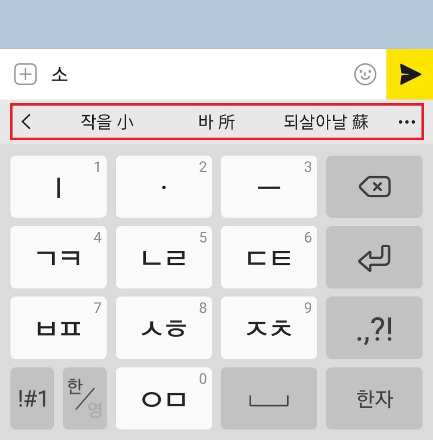 스마트폰에서 문자 메시지나 카톡 메시지를 작성하다보면 한자를 작성해야 할 경우가 있을 것이다.