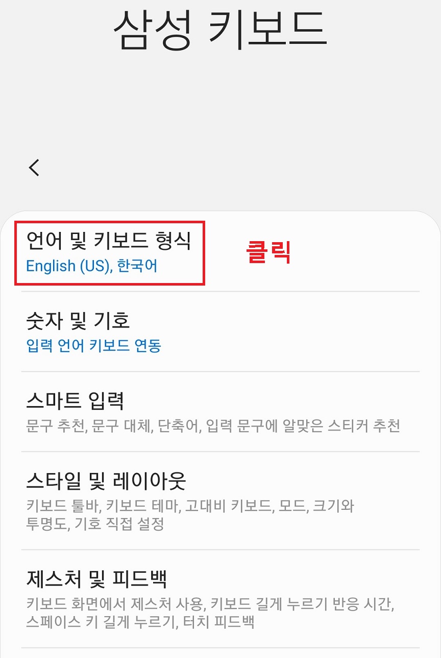 2. 그럼 삼성 키보드 화면이 나오는데 언어 및 키보드 형식을 클릭한다.