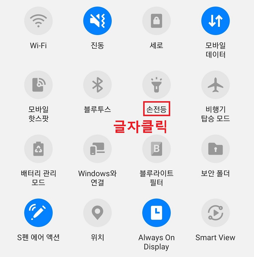4. 그럼 손전등 아이콘 밑에 있는 손전등이라는 글자를 클릭한다.