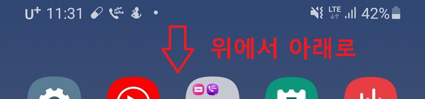 1. 갤럭시 스마트폰 화면 위쪽 끝에서 아래 방향으로 터치한다.
