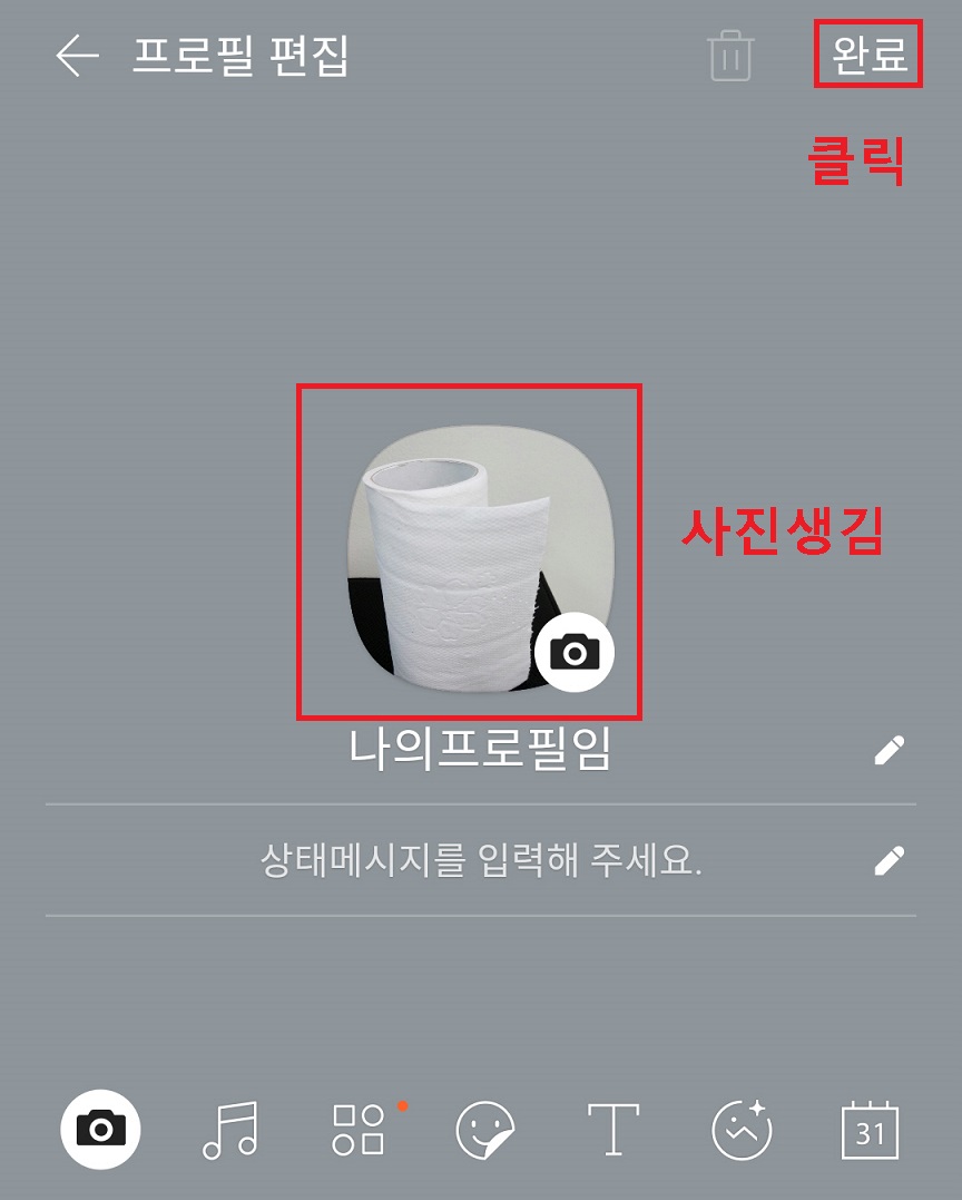 5. 이제 카톡 프로필 사진 올리기가 되었다.