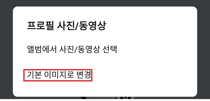 3. 그럼 선택할 수 있는 창이 뜨는데 기본 이미지로 변경을 클릭 후 우측 상단에 완료를 누른다.