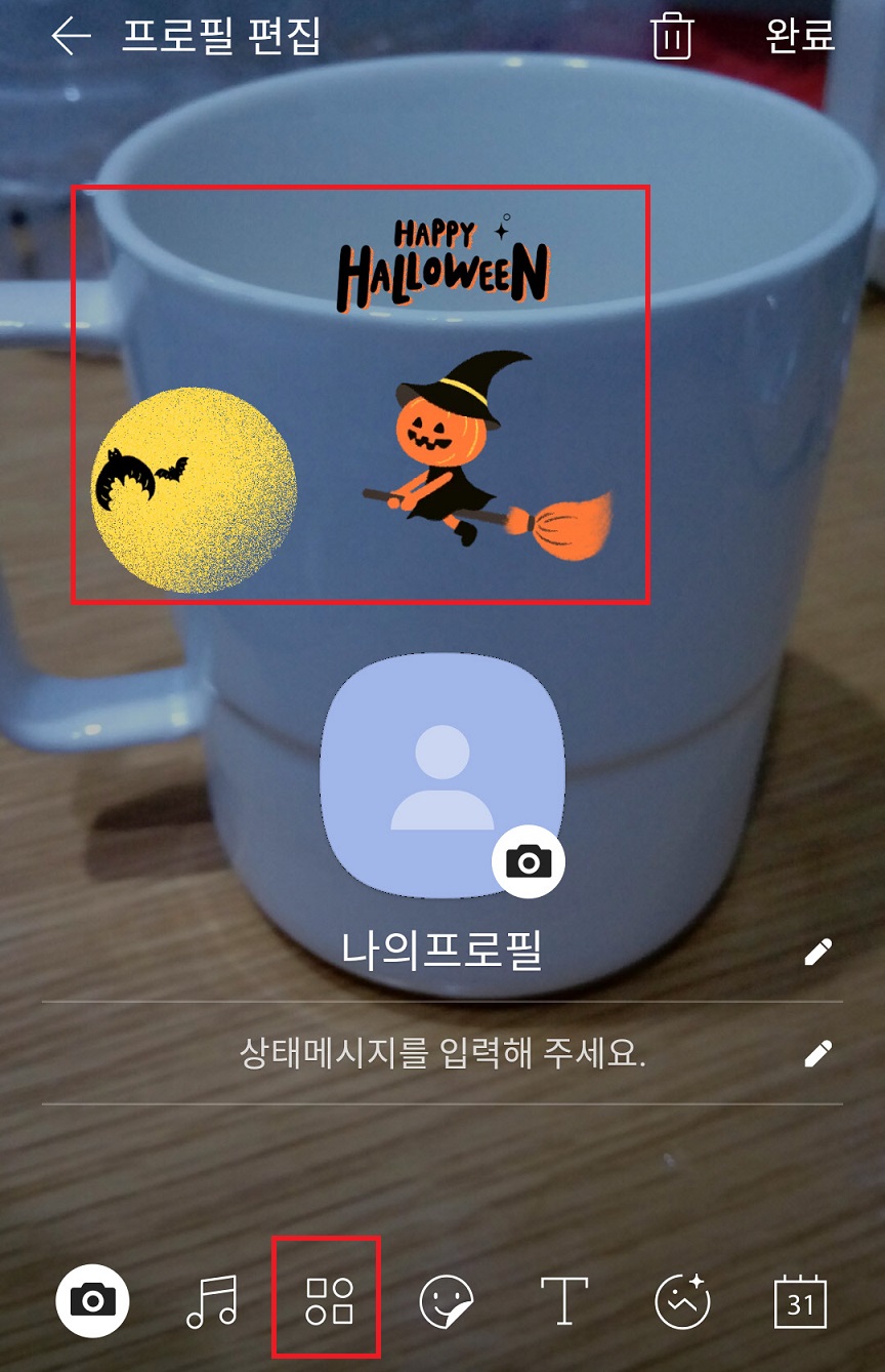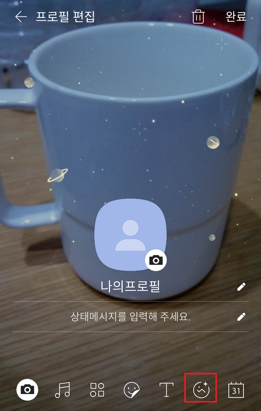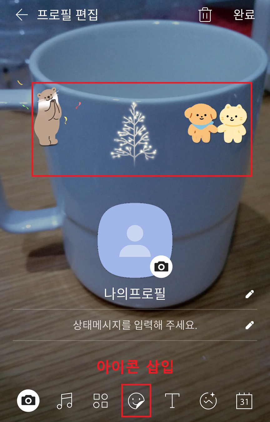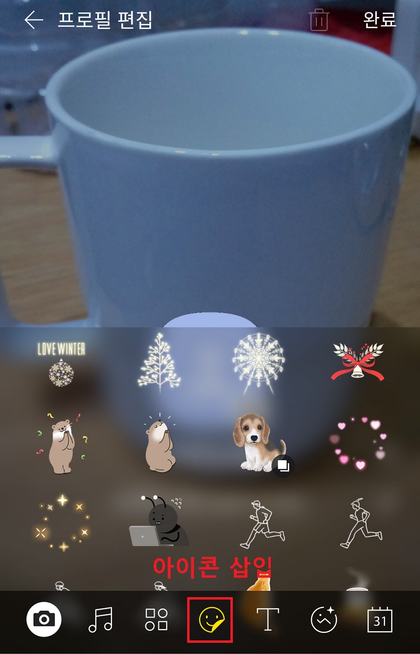 이모티콘 삽입은 기존 배경을 두고 카톡 프로필 배경 사진 바꾸는 방법이다.