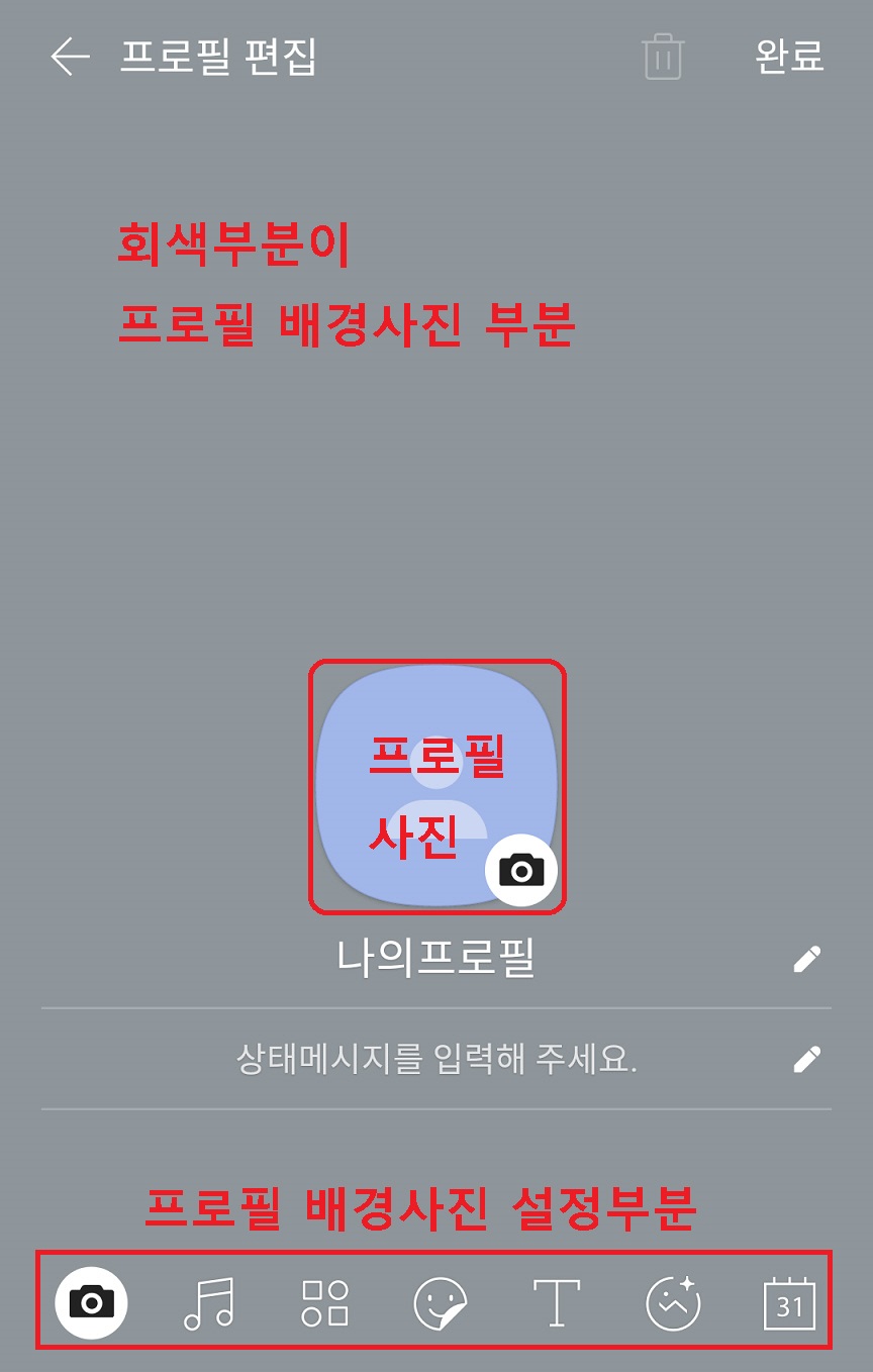 4. 회색부분이 카톡 프로필 배경 사진 부분이다.
