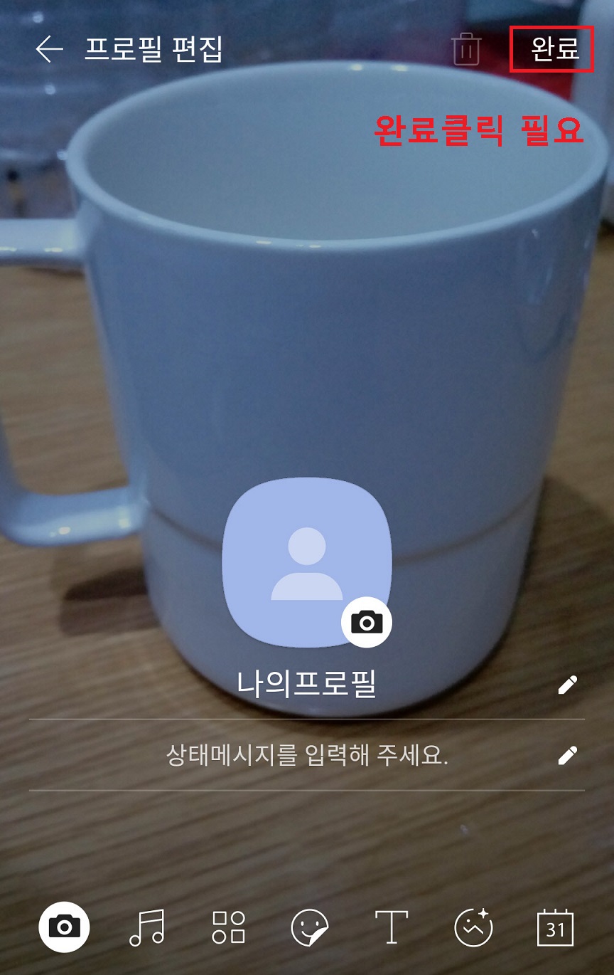 역시 우측 상단 완료 버튼을 눌러야 카톡 프로필 배경사진 바꾸는 방법이 완성되는것을 잊지말자.