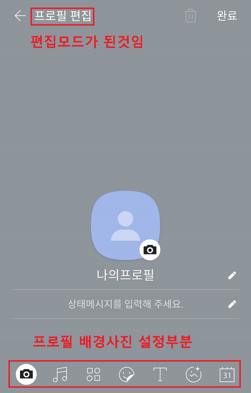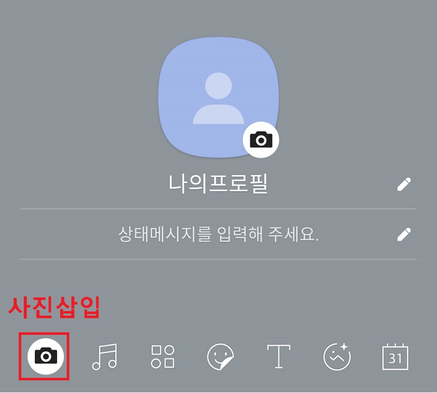5. 카메라 아이콘은 사진 삽입하여 카톡 프로필 배경 사진 바꾸는 방법으로 활용할 수 있다.