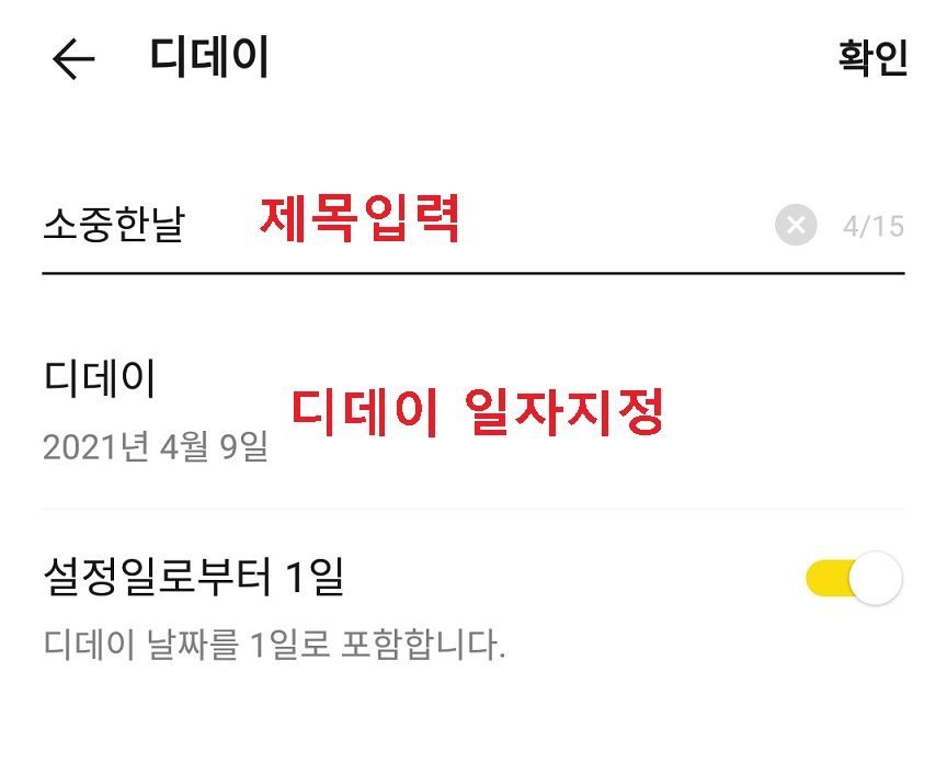 21. 그럼 디데이 설정하는 화면이 뜬다.