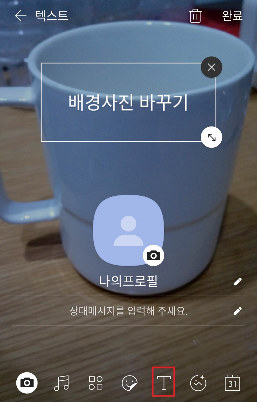 글자삽입은 기존 사진을 그대도 두고 카톡 프로필 배경 사진 바꾸는 방법이다.