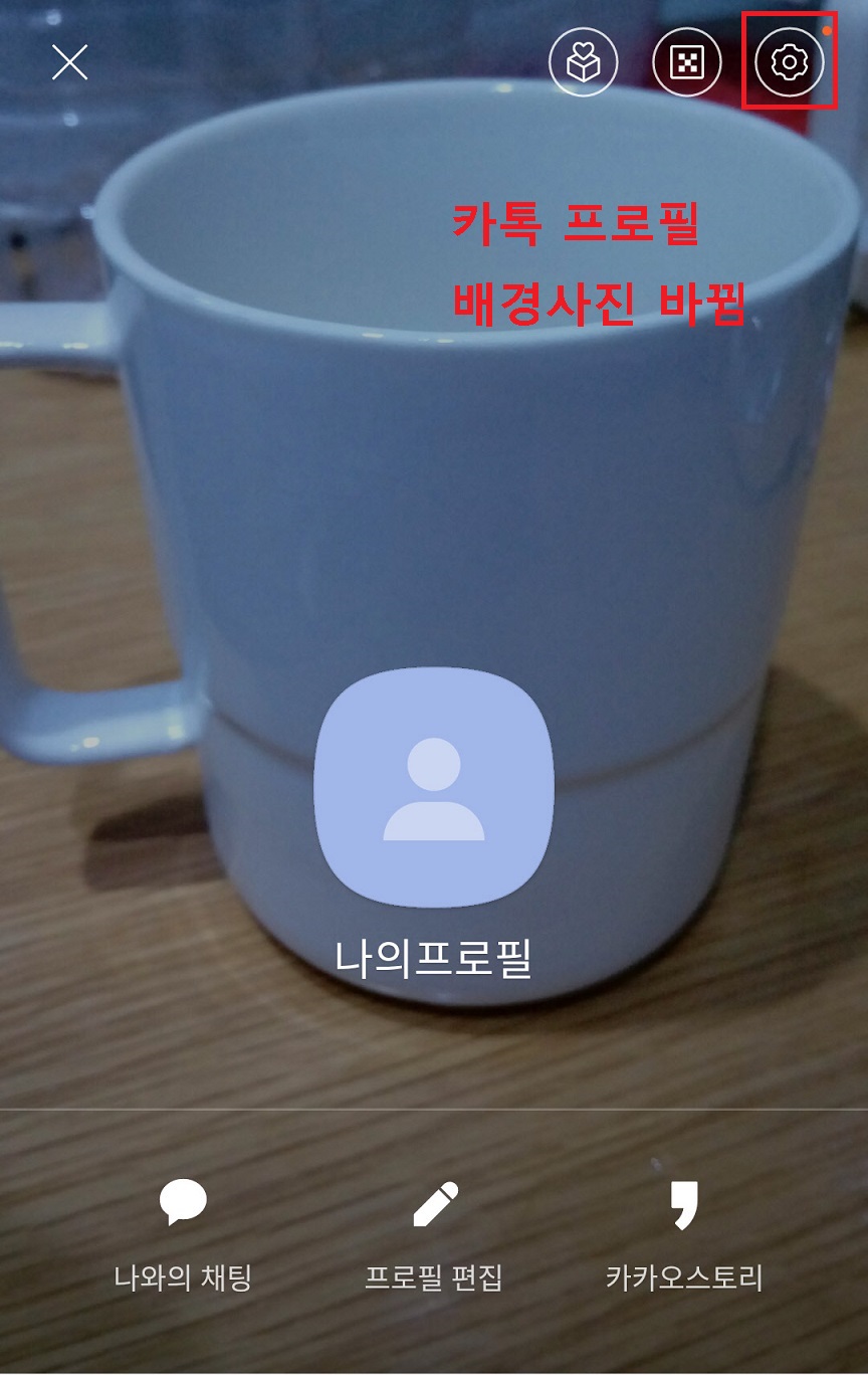 8. 그럼이제 해당 부분이 톱니바퀴 모양으로 바뀌면서 카톡 프로필 배경 사진이 바뀌었다.