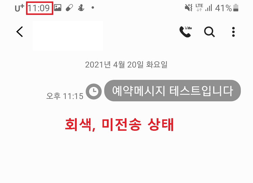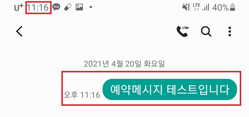 그래서 실제로 상대방이 예약 메시지를 수신했는지 확인해보겠다.
