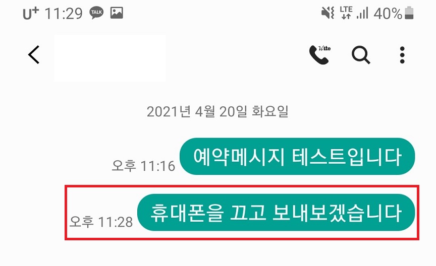 그러니 핸드폰을 켜자마자 예약 메시지가 전송되었다.