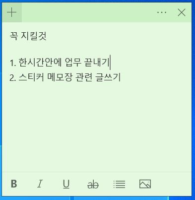 한 번쯤 아래 사진처럼 컴퓨터 바탕화면에 스티커 메모장을 사용하는 경우를 본 적이 있을 것이다.