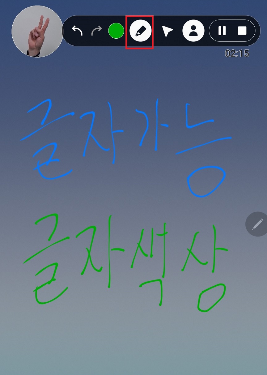 13. 펜 모양 아이콘을 클릭하면 화면에 글자를 쓸 수 있다.