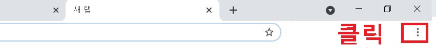 1. 크롬 브라우저 상단 우측에 점 3개 모양(표시 부분)의 아이콘을 클릭한다.