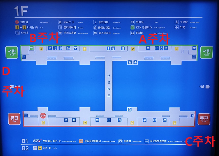 A, B 주차장은 코레일에서 운영하는 것이고 C, D주차장은 운영주체가 다른데