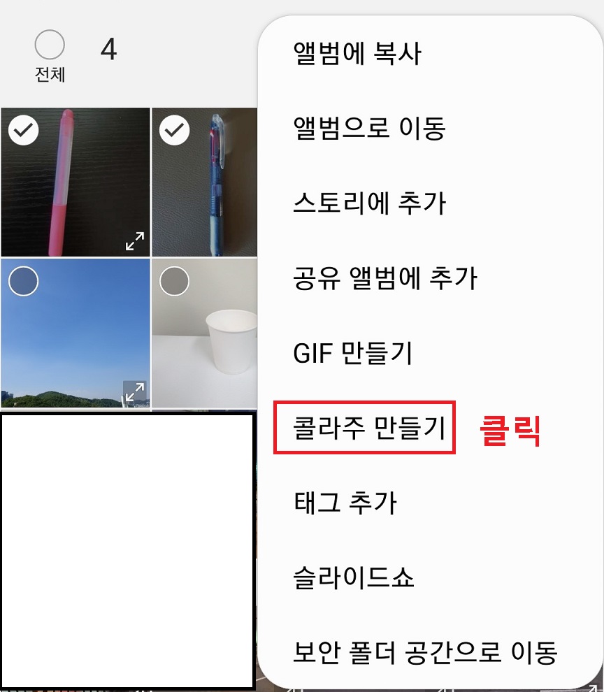 3. 선택창에서 콜라주 만들기를 클릭한다.