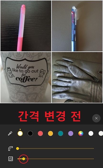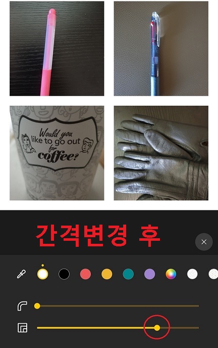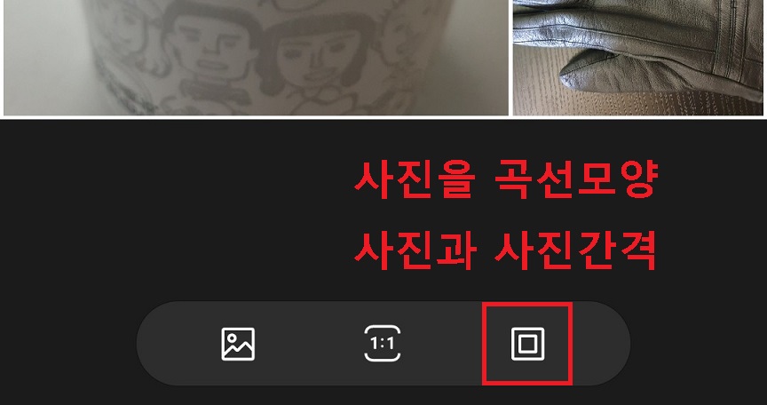 10. 사각형 2개 모양의 아이콘을 클릭하면 사진과 사진 사이 간격을 조절할 수 있다.