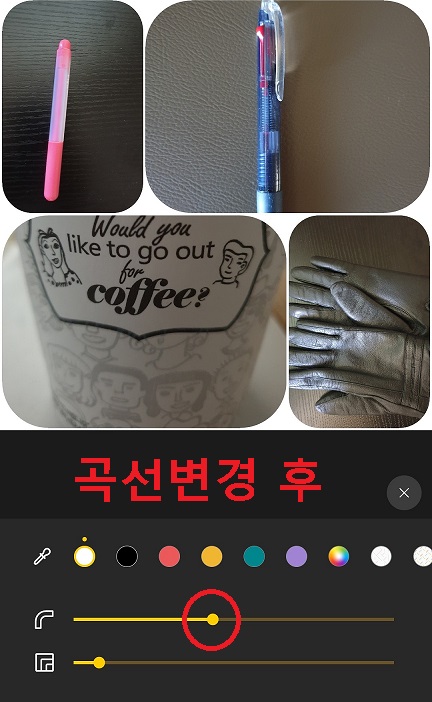 11. 표시 원모양 단추를 이동시켜 사진의 모양을 곡선으로 바꾸어 보았다.